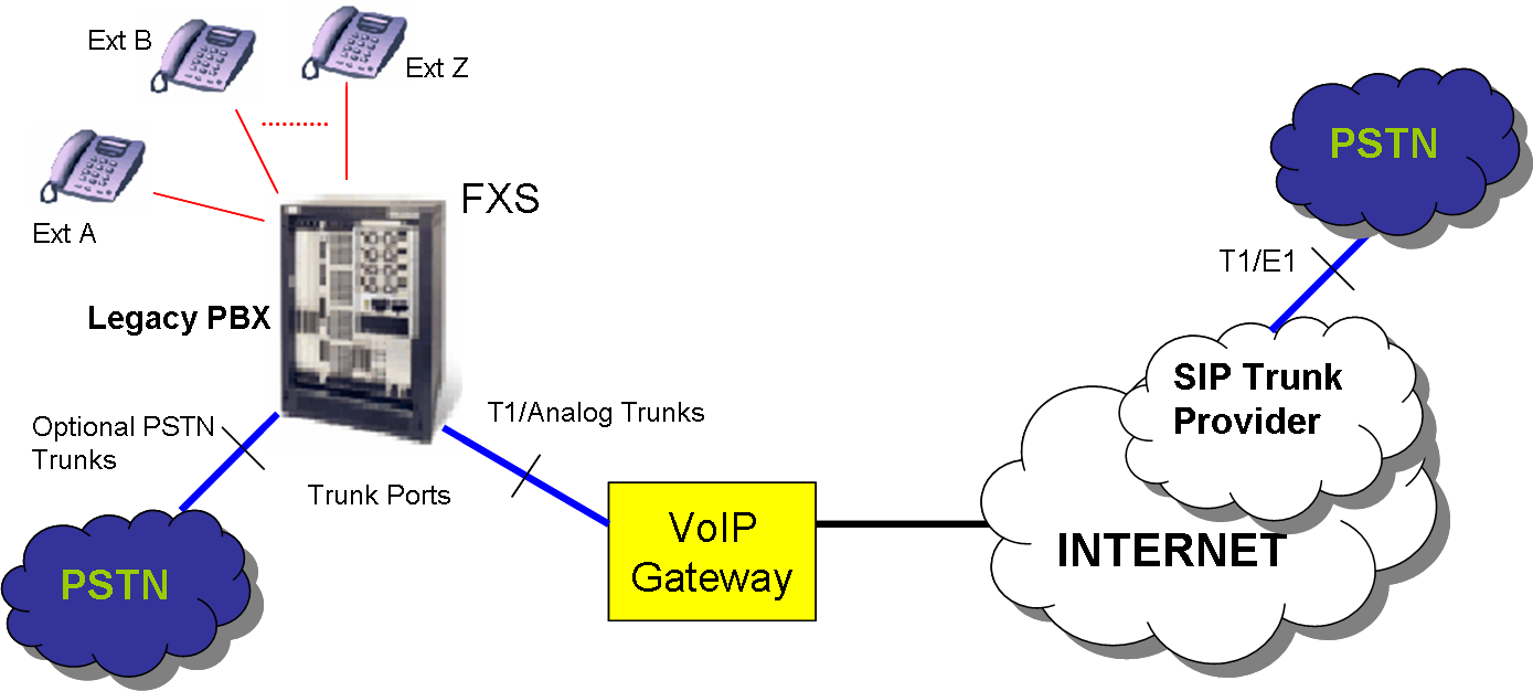 In order to take advantage of SIP trunking, an enterprise must have a PBX that connects to all internal end users, an Internet telephony service provider (ITSP) and a gatewy that serves as the interface between the PBX and the ITSP.